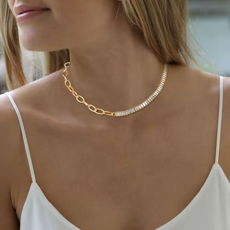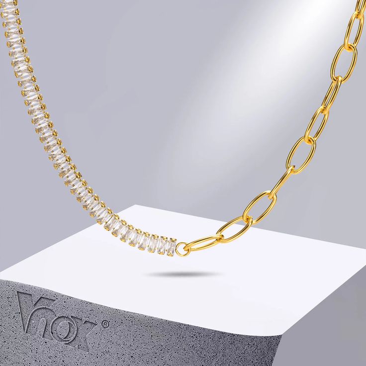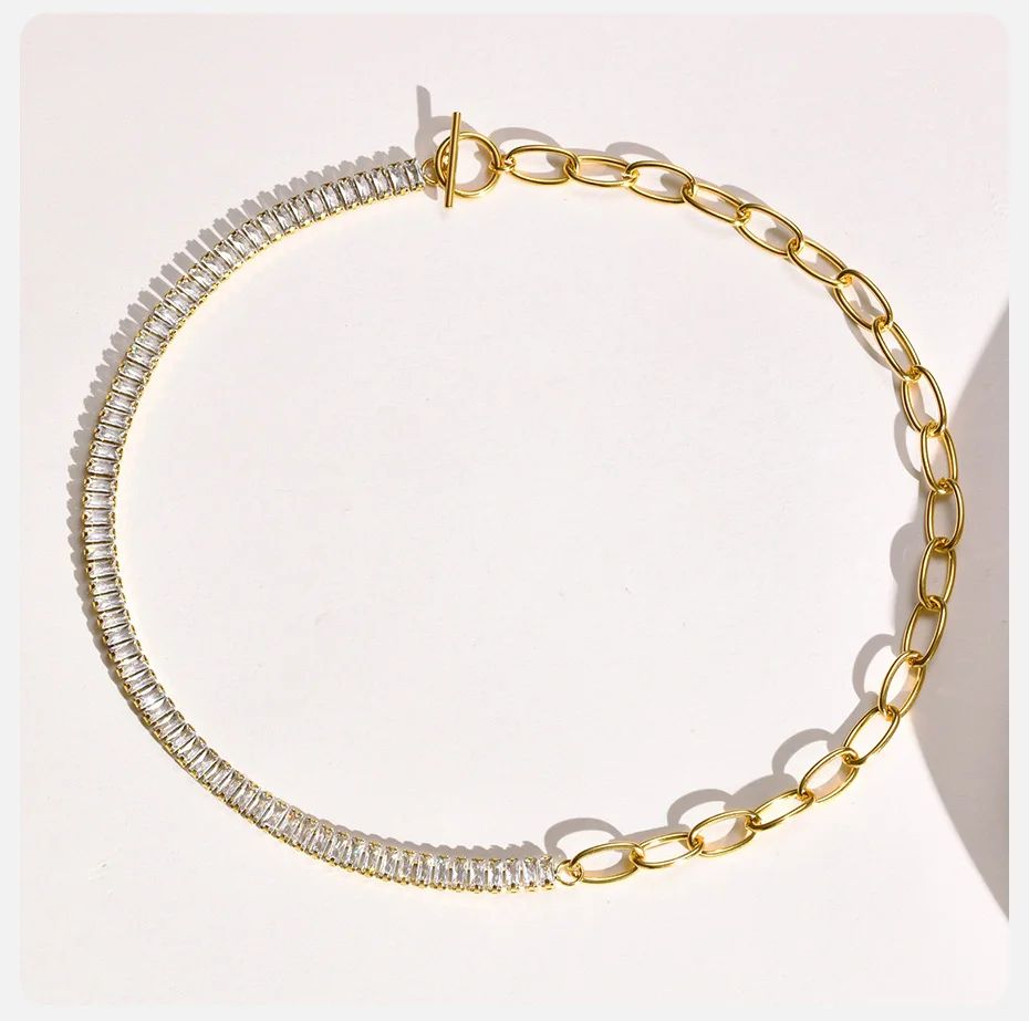 Colar / gargantilha de aço inoxidável com pedras zircão