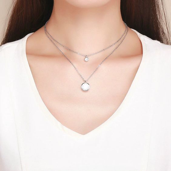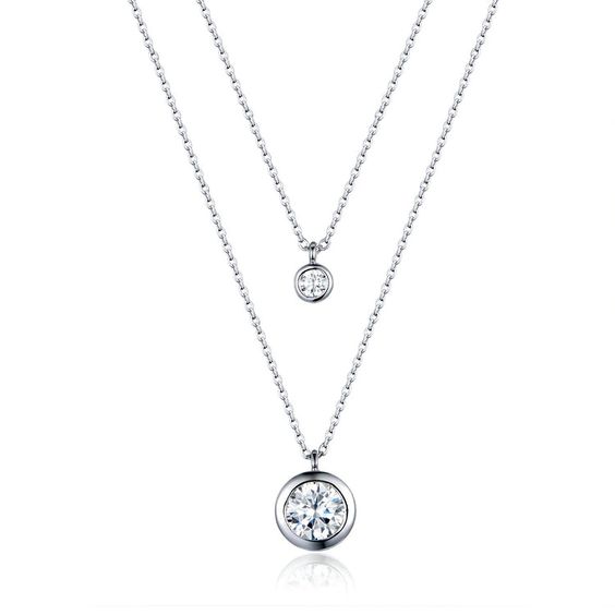 Fio duplo de aço inoxidável com dois pendentes / pingentes e pedras zircão / zircónia