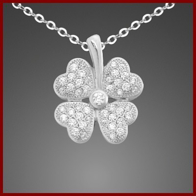 Pendente / pingente de prata (925) com pedras zircônia / zircão cúbica (Trevo)